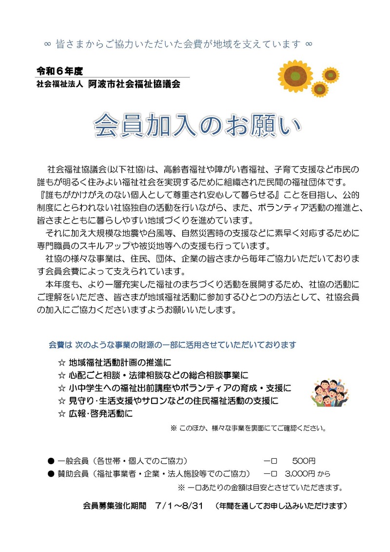 阿波市社会福祉協議会会員加入のお願い